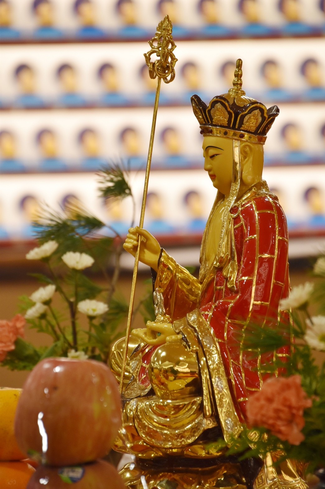二 0 二一辛丑年是華梵文教基金會豐收的一年,是嶄新的一年在董事長,仁朗法師的領導下眾緣和合發心信眾,加上護持委員與志工們與工作人員的付出,除了每月例行的法會、演講與課程更舉辦二 0 二一「佛像之美特展(展期:三月二日,五月二日)以及「雲山萬里行 -東瀛篇,曉雲導師一九五六年日本行旅」特展(展期:十月十五至十二月三十日)以追思上曉下 雲導師110 周年誕辰 紀念。在所有活動中眾 所期待,最要強調的是 「法華三聖像」安座盛 典。這是本基金會新空 間規劃的「法華三聖 殿」,在董事長仁朗法 師的研議,林增桶藝師 【巧手創作,歷時一整年 新塑造的彌勒菩薩與文 殊菩薩聖像圓滿完成。 兩尊菩薩聖像經過泥塑 翻模細修後,以珍 珠白漆、貼金,加以三 【寶弟子供養瑪瑙、綠松 石等寶珠鑲嵌,面貌莊 嚴而慈祥可親。另外, 原有的主尊釋迦摩尼聖 像,也配合三聖一致色澤而重新整修完繕 。